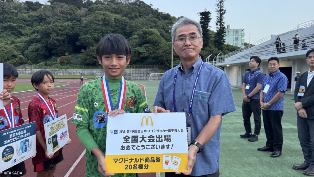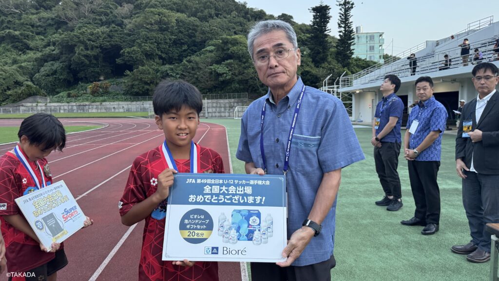12月26日から鹿児島県で開催される全国大会に出場する「FC琉球 OKINAWA U-12」には、引き続き万全の準備を整え、全国の舞台で沖縄代表として最高のパフォーマンスを披露していただきたいと思います。